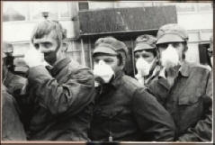 「石棺」の建設作業は、事故から2ヶ月後には始まっています。つまり、建設作業に取りかかれるよう、それまでには破壊された原子炉の周辺の片づけが終わっていたということであります。最初に建屋周辺の片づけにあたったのは、徴兵年齢の若い兵士たちでした。リクビダートルの中でも、彼らの被曝が最も大きかったと考えられますが、放射線測定器もろくに持たずに作業にあたったことが知られています。